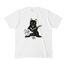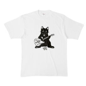 Tシャツ - XL - 白ロックが大好き!エレキギターを離さない黒猫くんです♪