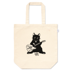 トートバッグ - M - プリント面積中ロックが大好き!エレキギターを離さない黒猫くんです♪