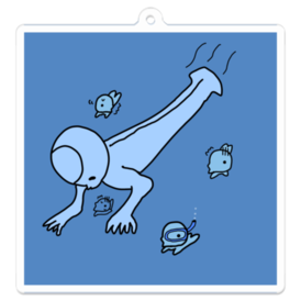 アクリルキーホルダー - 70 x 70 (mm) - ヒトガタと水泳