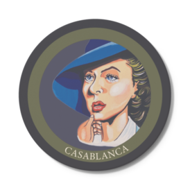 コースター - 円形『カサブランカ』(1942) 主演/ハンフリー・ボガート イングリット・バーグマン 複雑な理由を抱えながら最愛の男の前から姿を消した女。夫を持つ身となった今でも、かつての恋人を前に心が激しく揺れる。二人の男の間で苦悶しながら、女はかつての恋人のもとへ走ろうとする。時あたかも第二次世界大戦前夜。男は彼女とその夫を亡命させるために、身を削るように愛を棄てる。 『もう離れないと決めたわ』 『俺たちにはあのパリの想い出がある』
