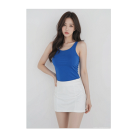 ブルータンクトップ×ホワイトミニスカートの爽やか美女ポスター