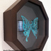 Psycheなどに使用した蝶々の下絵をそのまま縮小させてつくった切り絵です。7.5センチ四方の紙で切りました。 額縁は立体額で2センチほどの深さのあるものです。中空に浮くように額装しています。 詳しくはお問合せください。