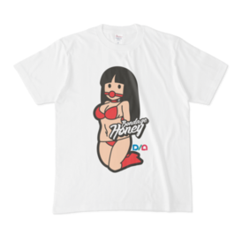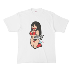 Tシャツ - XLボンデージさんが好きなので、ポップなイラストでTシャツを作ってみました。黒髪赤拘束ですが、デザイン上は金髪青拘束もあります。リクエストがあれば増やすかも。