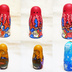 童話【人魚姫】のキャラクターをマトリョーシカにしました。 人魚姫、魔女、王子様のセットです。 人魚姫の体部分にオーロラカラー、貝殻にラメを使用しており、優しく輝きます。 両面お楽しみいただけるよう、それぞれ反対側にも海の生き物を描いています。 ★人魚姫の後ろ側…タコ、チンアナゴ、ヒトデ、クマノミ、チョウチョウウオ、ウミガメ、カニ ★魔女の後ろ側…ウツボ、アンコウ、サメ、ウニ ★王子様の後ろ側…クラゲ オリジナルの箱が付いておりますので、プレゼントにもオススメです♪ マトリョーシカとして飾るのは勿論、マトリョーシカの中にボタンやビーズ、アクセサリーを入れて持ち歩いても良いと思います(^-^) ※画像にはありませんが、大きなマトリョーシカの底にPUKONNU!のロゴを入れてあります。 主線を焼いて描いた後、アクリル絵の具で着色、つや消しのニスで仕上げています。 サイズ:約7cm、4.3cm、3㎝ 素材:菩提樹、白樺 ~ご使用上の注意~ 仕上げのニスを塗っておりますが、水気を避けてください。 退色防止として、直射日光が当たる場所には置かないでください。 ■配送方法は定形外郵便になります。