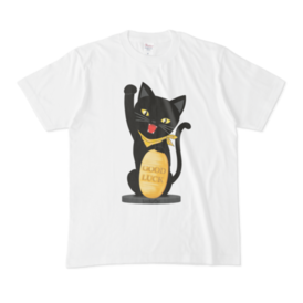 招き猫Tシャツ白ボディ_004イエロー_4size