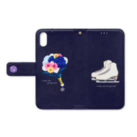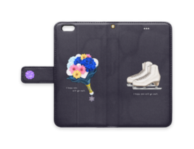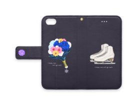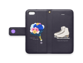 スケート靴と花束の手帳型スマホケースです。 ご希望の機種を選んで、ご注文下さい。