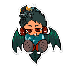 アクマの鈴木君の宙づりアクリルキーホルダーです。宙づりになっても尚ふんぞり返ってます。 二枚舌のアクマをへらへらと演じているけれども彼の本当の正体とは?