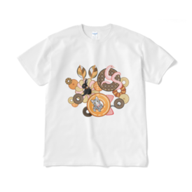 Tシャツ(短納期) - XL - ホワイトこの商品はpixivFACTORYで作られた商品です。サンプル画像は完成イメージのため、実物と異なる場合があります。 動物とドーナッツ(リメイク) Animal and doughnut (Remake) 昔描いたもののリメイクです。 旧バージョンは探せばどこかで見つかると思いますので興味ある方がいましたらどうぞ。 【使用画材】CorelDRAW X5、Adobe Photoshop Elements 6.0 【ホームページ】http://64cat64.jimdo.com/ ドーナッツ ドーナツ 動物 蛇 ヘビ 兎 うさぎ 猫 食べ物 お菓子 おやつ イラスト デザイン Donut doughnut Animal snake rabbit cat Food sweet snack illustration design