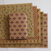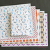 和柄のパターンを一面にカラー印刷した紙製ブックカバーです。 ブックカバーのサイズはA4判。天地左右を折って文庫のカバーとして使うことができます。 絵柄の違う5枚で1セット。 和柄でおなじみのパターン5種(蜻蛉、鹿の子、立涌、算木崩し、花菱亀甲)をそれぞれ一面に敷き詰めました。 使用した用紙は再生紙(環境紙 コピー紙よりやや厚く、黄味がかっている)とクラフト紙の2タイプ。お好みのほうをお選びください。ブックカバーとして使うだけでなく、小物の包装紙、写真撮影の背景紙などアイデア次第でいろいろ活用できます。折らずに発送します。 【素材】 再生紙 環境紙(中厚口) 厚さ0.11mm クラフト紙 厚さ0.11mm 【サイズ】 A4判(幅297×高さ210mm)×5枚 【購入の際の注意点】 市販の用紙にレーザープリンタでカラー印刷したものです。 写真と実物では多少色味が異なる場合があります。