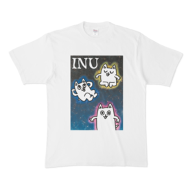 宇宙に漂う3匹のINUをプリントしたTシャツです。