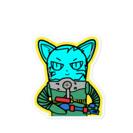 火星人ぽいネコのステッカー ぶっそうな武器持ちでつよそうです この商品はpixivFACTORYで作られた商品です。サンプル画像は完成イメージのため、実物と異なる場合があります。