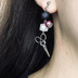 全長:約6cm 彼の装いであるモノトーンにガーリーな紅いパールを組み合わせることで、かっこよくてちょっと可愛い彼の魅力を表現してみました ハサミはぜひ右耳に着けてください 左耳はノルアドレナリンの化学構造式です 画像はイヤリングですがサージカルステンレスピアスにも出来ますので、ご希望の方はご購入後にメッセージでお知らせください ※素人の手によるものですので既製品に比べて作りの甘い部分もあります 気になるかたはご購入をお控えください 申し訳ございませんがこちら一点物ですのでお取り替え出来ません ※また金属アレルギーに配慮したサージカルステンレス316L製のポストピアスは必ずしも反応が出ないことをお約束するものではありません お肌に異常を感じられた場合はご使用をただちにおやめになり、かかりつけ医にご相談ください