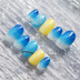 【商品説明】 ミュージカル刀剣乱舞〜静かの海のパライソ〜公演イメージです。 深くなる海をイメージしたチップをメインに、中指・薬指は浦島虎徹くんをイメージしたカラーで波にも見えるような大理石ネイルを合わせました。 気になる点などございましたら、ご検討段階でもお気軽にご相談ください。 【内容】 ・イメージネイル10枚×1セット ・ネイルチップ用両面テープ1回分×1シート 【各種オプション】 ご不明点はメッセージからお気軽にご連絡ください☺️ https://sunagimo24.booth.pm/item_lists/rM9TeWAr ・チップタイプの変更(無償) ・サイズの変更(無償) ・+長さ調整(有償) ・+ネイルチップケース(有償) ・+おでかけセット(有償) ・+追加ネイルテープ(有償) ・お急ぎ便(有償・ご依頼のあった場合のみ在庫追加しています) 【ネイルチップのアレンジ】 紋の位置の入れ替え、片手づつほかのネイルチップと組み合わせ…などご希望がございましたらお気軽にご相談ください☺️ 【サイズの測りかた】 爪のカーブにあわせて定規ではなくやわらかいメジャーで爪の端から端までを測ってください。 初めてのご注文の場合はサンプルチップでの計測をおすすめしております。 心配な場合はひとつ大きめのサイズがおすすめです。 お届け後にファイルで削ることで調整も可能です。 【注意事項】 ・ひとつひとつ手作りで作成しておりますので、ご理解いただける方のみご購入をお願いいたします。