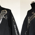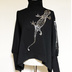 New*銀箔BiGヤモリのヘムライントップス:8,000yen 手作業で焼き込んだ煌めく銀箔のBIGヤモリちゃんのトップスが生まれました* ジャージなもっちりと触り心地の良い素材で腕を上げたり動くたびに揺れるヘムラインの形が格好良いです* (特殊な形でわき腹部分が開いておりますので、手を上げた際などは見えてしまう可能性がありますので、中にノースリーブかタンクトップの着用推奨です) サイズはワンサイズ 約:身幅53㎝着丈53㎝袖丈66㎝肩幅49㎝ ※写真は太め9号サイズのボディに着用させております。 少し厚めの生地ですがさらりとした素材なのでこれからの季節(夏前くらいまで)に着心地良く一押しな作品です*