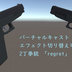 バーチャルキャスト内で遊ぶことができるVCIです。 製作者:ふぇーりねる ※本商品の利用規約にはUni-Virtual Licenseを利用させてい頂いております。 商品説明下部に規約の記載がありますので、ご確認いただいてから購入をご検討下さい。 また、本製品のエフェクト作成にはEffekseerを使用しております。 ★モデルについて THE SEED ONLINEにvciファイルをアップロードすることで、 カスタムアイテムとして呼び出すことが出来るようになります。 当たり判定はなく、エフェクト自体は物体を貫通します。 スクリプトの設定上、他の人と一つづつ持った場合、 正常に動作しません。 動作の雰囲気は埋め込みの動画をご確認下さい。 ★内容物 ・regret.vci 本体データです。 THE SEED ONLINEにアップロードしてご利用下さい。 ・利用規約テキスト 本ページ下部に表示してある利用規約と同内容のテキストファイルです。 ◆スクリプト同伴版のみ◆ ・regret.fbx 銃の3Dモデルデータです。 ・regret_main.lua エフェクト再生や切り替えで使用しているスクリプトファイルです。 ※その他お問い合わせは下記Twitterアカウントにご連絡下さい For other inquiries, please contact the following Twitter account https://twitter.com/felineru
