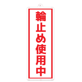 アクリルキーホルダー - 100 x 100 (mm)輪止め使用中札です。 大型車の輪止め使用時などにどうぞ。