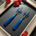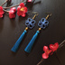 【ゴールドビーズ】吉祥結びとタッセルのピアス(イヤリング)(薄青)【チャイナ】【中華風】【和装】【和風】【袴】【着物】