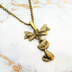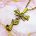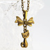 アンティークゴールドの猫とリボンのシンプルで可愛いネックレス 金古美色 長さ変更可 アジャスター可