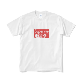Tシャツ(短納期) - XL - ホワイトこの商品はpixivFACTORYで作られた商品です。サンプル画像は完成イメージのため、実物と異なる場合があります。 あのハイセンスブランド、超自分(Superme)がTシャツになったぞ!!!!!
