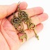 猫と歯車・ギアを組み合わせたアシンメトリーピアスです カラーはアンティークカラーに統一してあります 一方は躍動感ある跳ね猫シルエットのモチーフで、もう一方は猫が下にいる鍵のモチーフです 両方にチェーンを、またハートや小さい歯車なども加えて、精巧&多層感を演出しています 猫のチャームでネコ好きをアピールできるのはもちろん、人気のスチームパンク風なアンティーク感が大人可愛いを演出します 可愛いだけではなくカッコいい感もありますので、男女問わずお使いいただけるようにデザインしています ※写真のイメージより実際には大きく感じたり重く感じる場合がございます。ご購入前に必ず記載してあるサイズや重量をお確かめください ※ピアス金具などはスチール製ですので、金属アレルギーの方はご注意ください ※こちらはフックピアスをネジバネ式イヤリング(アンティークカラー 丸皿タイプ)に変更が可能です 「素材」 亜鉛合金:アンティークゴールド スチール・合金(ピアス金具など) 「寸法」 大きさ(ピアス部含めず) 猫の方:約46mm×17mm 鍵の方:約63mm×17mm 重量(ピアスの場合) 猫の方:約4グラム 鍵の方:約5グラム 【ご注意】 ※ご使用のモニターの色の違いにより、実際の商品と色味が若干異なる場合がございます。 NN-ER52