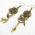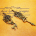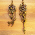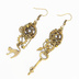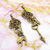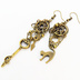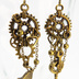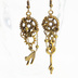 アンティークゴールド 猫と歯車・ギアのスチームパンク風アシンメトリー ピアス Vol.5 鍵 時計の針 チェーン