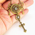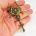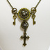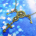 アンティークゴールド ロザリオと歯車の多重多層スチームパンク風ネックレス ゴシック 鍵 スワロフスキー 長さ調節可