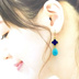 4弁花ピアス【シアン・変光あり】【両耳用】
