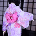 紫の和柄に白のレースを重ねて大人っぽく仕立てました。