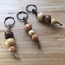 Beaded Keychain ラウンドウッドビーズ3連のキーチェーン(チョコ)