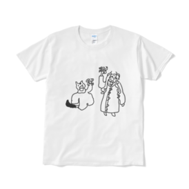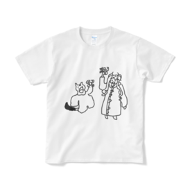 Tシャツ - XL - ホワイトざあぢさんと飼い猫がカエルを掲げている風景です。 アットホームとはまさにこのこと。 これを身にまとえば、あなたもアットホームの一員です。 (実感には個人差があります。) ※この商品はpixivFACTORYで作られた商品です。サンプル画像は完成イメージのため、実物と異なる場合があります。