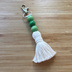 Beaded Keychain ラウンドウッドビーズ3連とタッセルのキーチェーン(ライトグリーン)