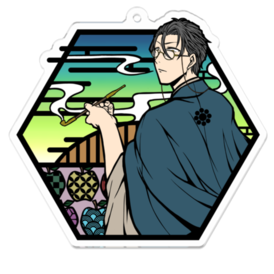 【和柄】切り絵風アクリルキーホルダー1:望月 暁