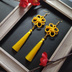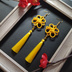 【太】吉祥結びとタッセルのピアス(イヤリング)(黄色)【着物】【和風】【チャイナ】【中華風】【和風】
