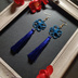 吉祥結びとタッセルのピアス(イヤリング)(青)【和風】【和装】【チャイナ】【中華風】【着物】【和ゴス】