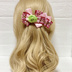 鬼滅の刃の禰󠄀豆子をイメージしたグログランリボンを使って作ったバレッタです(^^) 着物をイメージした柄のリボンに赤とベビーピンクのリボンを合わせて可愛らしいお色味にしました♡ リボンで作ったバラがポイントになって華やかに見えますよ⭐︎ お子様や大人の方でも使って頂けるデザインです(o^^o) バレッタ大きさ6cm 8cmのバレッタに変更可能です。 *こちらは他サイトでも出品しているため、消去する場合がございます。 *リボンは水に濡れると柄がにじむ可能性がありますので、お気をつけ下さい。 *バレッタとリボンを接着する際にグルーガンを使用しており、裏面に白くはみ出ている箇所がある場合がありますので、ご了承下さい。 バレッタ裏面のグルーのはみ出しはリボンが傷つかないように最小限の処理となっております。 *リボンの柄を綺麗に見せるために接着している箇所がございますので、強く引っ張らないようお願い致します。 *素人のハンドメイドですので、繊細な造りになっております。 *撮影時の光の加減により、写真と実物のお色味が違う場合があります。 *こちらは一つ一つ手作業で作成しているので、個体差や歪みがある場合がございますので、ご理解願います。 *配送事故等の責任は負いかねます。