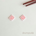 思わずつまんで食べてしまいたくなりそうな四角い"なると"がかわいいイヤリング・ピアスです。 白とピンクのビーズを使い、シンプルだけどポップなデザインに仕上がりました。 サイズは約縦1cm×横1cmと小粒でとても軽いので、耳への負担も少なく長時間のお出かけにもお使いいただけます。 こちらの作品は織り機を使わず、針と糸で一粒一粒手編みをしています。 最高級のシードビーズといわれるデリカビーズ(日本製)の細やかな質感をお楽しみください。 市販ではあまり売られることのないデリカビーズのアクセサリーは、ドット絵のような可愛らしさでハンドメイド販売ならではのお品です。 ■金具パーツは下記の2種より選択してください。 a、ネジバネ式イヤリング b、スタッドピアス ■同デザイン(!?)「雷紋 ピアス / イヤリング」 https://doumyoudai.booth.pm/items/2458735 ■和風&時代劇 一覧 https://doumyoudai.booth.pm/item_lists/mvdTqLA8 サイズ:約縦1cm×横1cm ~Φ~Φ~Φ~Φ~Φ~Φ~Φ~Φ~ ◆金属アレルギー等、お肌が敏感な方はご注意ください。 ◆ご使用の端末により、実際の商品と色合いが異なる場合がごさいます。 ◆金具等は仕入れ状況により、デザインに差し支えない範囲で変更となる場合がございます。