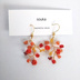 _____________________________________________________________ 十一月(霜月)【山茶花 さざんか】 Sasanqua 花言葉・・・ひたむきさ、困難に打ち勝つ 珊瑚の玉が可愛らしい印象の山茶花。 【使用素材】 珊瑚 ______________________________ 【配送料について】 配送料込み 【素材について】 ・縦45×横25mm ・14金ゴールドフィルド※ (ピアス金具・ワイヤー) ※14金ゴールドフィルド・・・素材に14金を圧着させたもので、メッキより剥がれにくい性質があります。 ・ワイヤーの繊細な作りの為、変形する事があります。形を整えてからご使用ください。 【イヤリング金具(メッキ)への変更可能(無料)】 備考欄にて【イヤリング金具希望】と記入してください。 【プレゼント包装について】 全ての作品は桐箱に入り、和紙のラッピングがしてありますので、そのままプレゼントとしてお渡しする事が可能です。桐箱は是非その後もお使いください。 ______________________________