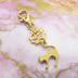 マットゴールドの跳ね猫とちょっとかっこいい歯車の大人可愛いファスナーチャーム キーホルダー マスクチャーム