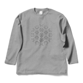 ロングスリーブTシャツ - XL - 杢グレーひねみわつら工房制作電磁場調整コイルをデザインを描くドットに使用して、神聖幾何学フラワーオブライフを描きました。コイルのエネルギーが転写され、私たちの免疫力UPと電磁波対策効果が期待されます。