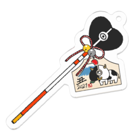 推尻神社の破魔矢を模したアクリルキーホルダーです。 目力強めのおしり大明神がきっとあなたの魔を払ってくれます。多分。