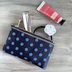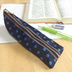****************************** 畳縁は、日本独特の織物で 最近では色々なデザインがあり、とても丈夫な素材です。 「Tatami heri」 The edge of the tatami It is a tape of textile to be attached to the edge of tatami. It has a unique design in Japan and is a very durable material. ****************************** 紺色地に瑠璃色の水玉模様の畳縁で作ったミニポーチです。 名刺や、診察券などのカード類をまとめたり、 スマホ等の充電ケーブルや リップやハンドクリーム、ヘアゴムや飴ちゃん アクセサリーやメモリスティック、ギターのピックなどなど 細かな物の収納に丁度いいサイズ感です。 他の人とは被らない、個性的な素材のポーチなので、 会話のネタにもうってつけです。 また、小銭や鍵を入れることもできるので、 男性にもおススメです。 日本らしいアイテムなので、 外国の方へのプレゼントや、海外旅行のお土産にもおススメです♪ パーティのプチプレゼントなどにも。 お揃いのペンケースもございます。 https://black-mow.booth.pm/items/2651407 一つずつ手縫いでお作りしています。 軽くて丈夫な素材なので、長くご愛用いただけると思います。 他のサイトでも同時に販売しておりますので、売り切れの場合がございます。 また、写真とは柄の出方が違う場合があります。 ご了承くださいませ。 ★サイズ 12cm×7cm 【注意事項】 洗濯・アイロンは出来ません。 お届けにつきましては、丁寧な梱包を心がけていますが、 配送時の破損、紛失に関しては補償出来かねますので予めご了承ください。 土日祝日が入りますと、発送が遅れることがあります。 送料削減のため、簡易包装を心がけておりますのでご了承のうえ、 ご購入をお願いします。
