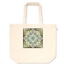 曼荼羅をモチーフにしたデザイントートです。 布に印刷しますので、見本よりも色がくすんだ仕上がりになると思います。ご了承くださいませ。(特に黄色や緑色の蛍光に見える部分がくすんだ色になると思います) イラストの端に『KAWACHIYA』の文字が入ります。 この商品はpixivFACTORYで作られた商品です。サンプル画像は完成イメージのため、実物と異なる場合があります。