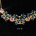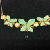 スワロフスキーのストーンを使ったネックレスです。 ネックレスの長さは約38cm+アジャスター約5cmです。 サイズはサイズ比較用画像をご参照ください。真ん中の大きな蝶がだいたい百円玉大です。 ※構造の問題で付けるときに蝶が前に倒れてしまうことが多いようです。ひっくり返ってしまう場合、一度留め具を止めた後に蝶をひっくり返すと安定します。 ※一つずつ丁寧に作るよう心がけておりますが、繊細な作りとなっていますので、強い負荷などはかけないようにご注意ください。 ※できるだけ実物に近づけるように努力していますが、実物と写真の色味がちがって見える場合があるかと思います。気になる場合、購入前にお問い合わせいただければ幸いです。