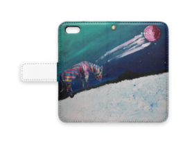 雪景色とレインボージブラ 手帳型IPhoneケース ストラップ穴あり