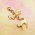 マスクチャーム マットゴールドの跳ね猫とリボンの大人可愛いチャーム キーホルダー