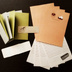 便箋 2種×4枚(A5 / 計8枚) 封筒 2種×2枚(洋形2号 / 計4枚) ミニカード 2種×2枚(計4枚) 栞 文庫用栞1枚 封緘シール(箔押し) 4枚 工房便り レターセットに使用した紙などを記載