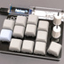KailhというメーカーのBox Blackスイッチを使用しています。 一般的な既製品キーボードの黒軸と同様、若干重めの押し心地で、誤ってキーを押す事が少なくなります。 また、一般的なメカニカルスイッチより若干軸のブレが少なくなっています。