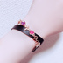 肉球とハートにそれぞれのイメージカラーのシェルを埋め込みました。光に反射しキラキラと光ります。肉球とハートの色を表裏で変えています。モチーフの両端に留め具を付けているのでお好きな方を表にすることができます。