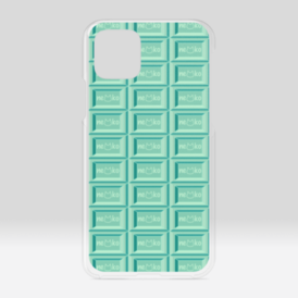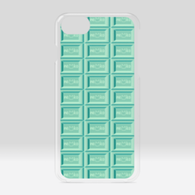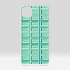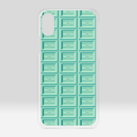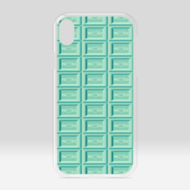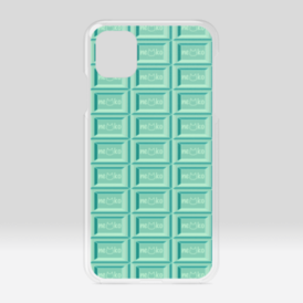 猫の模様が入ったミントチョコレート 板チョコ風クリアiPhoneケース - ロゴあり