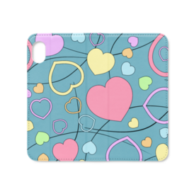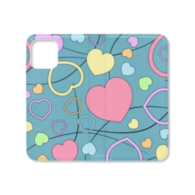 ハート柄が可愛い手帳型ケースです。 機種:iPhone XR/11/12/12Pro この商品はpixivFACTORYで作られた商品です。サンプル画像は完成イメージのため、実物と異なる場合があります。